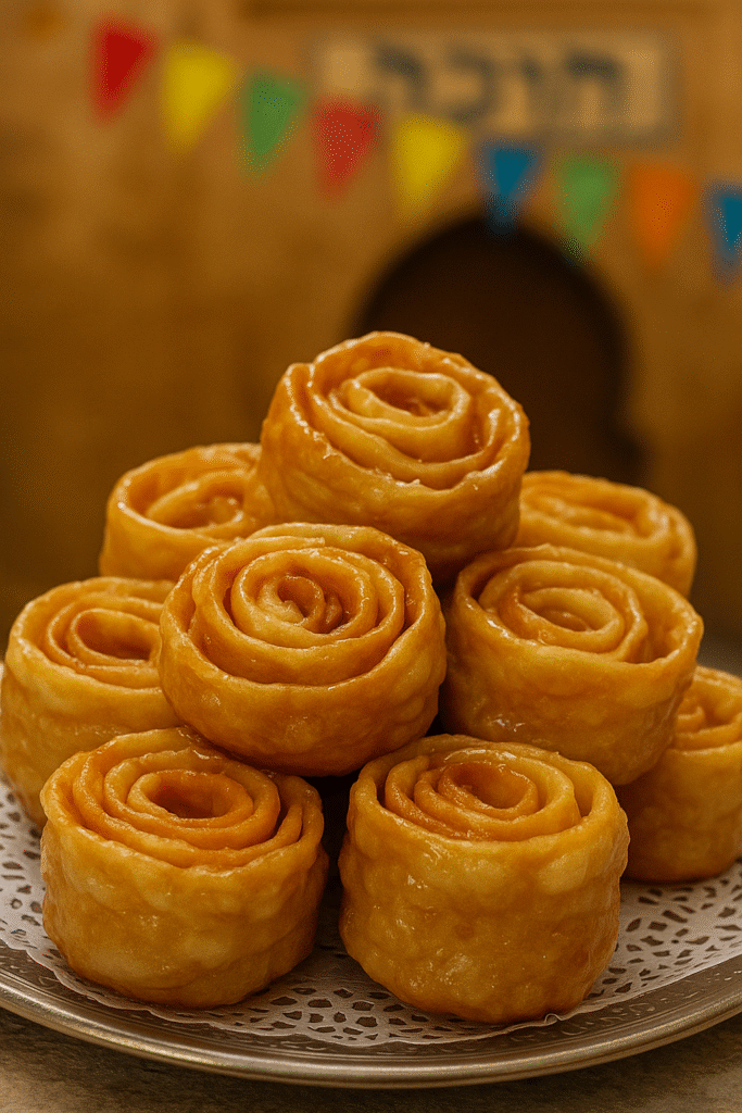 Cuando están todas fritas se prepara un almíbar no muy espeso. Se añade un chorreón de limón.